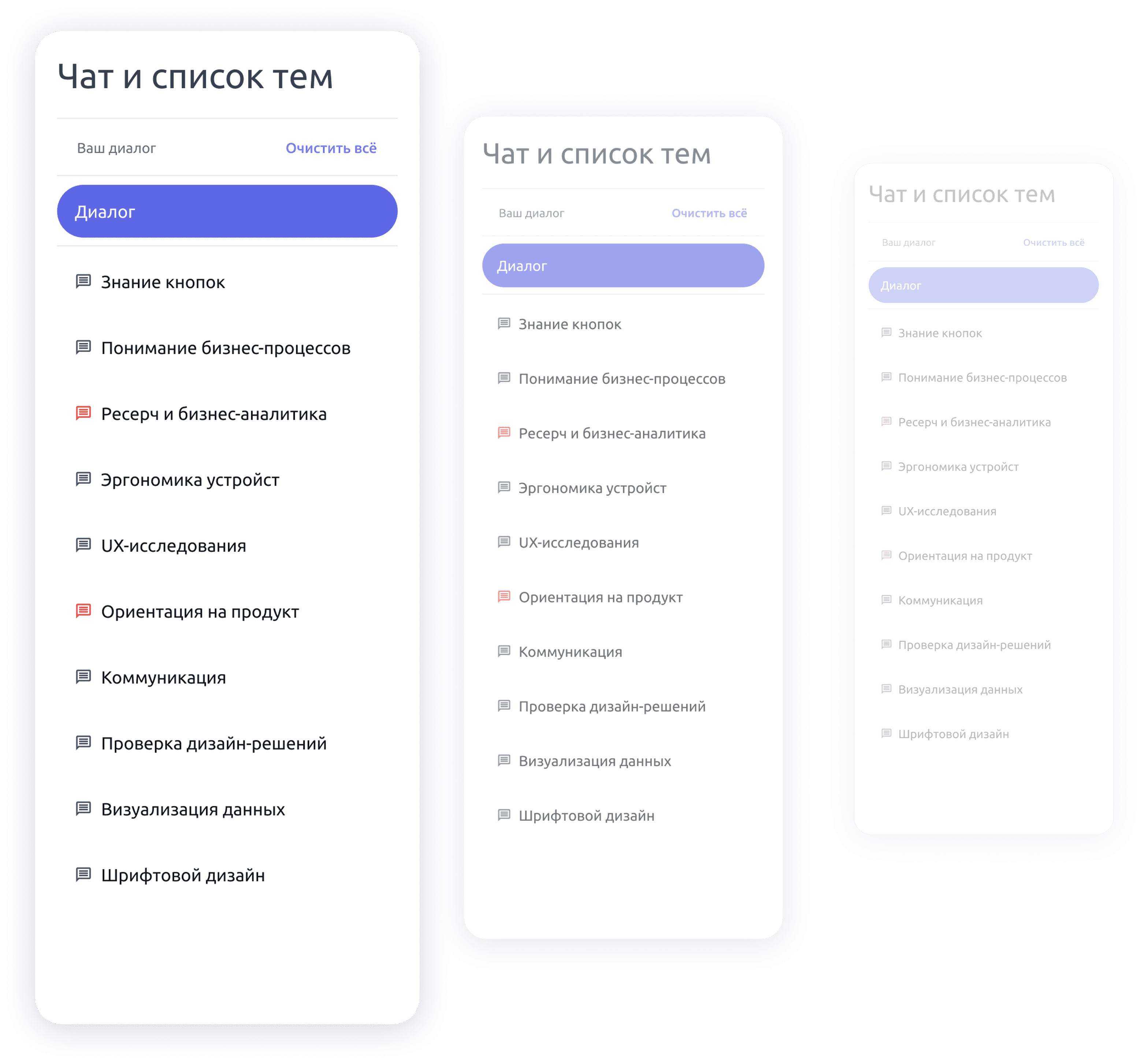 В конце собеседования диалог разбивается на темы, что облегчает обзор и анализ ответов. Темы, в которых кандидат совершил ошибку, подсвечиваются